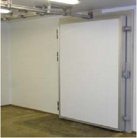 Door Leaf: 75mm or 100mm PIR core finished both sides with white food safe polyester or PVC laminate coated sheet steel, capped with anodised aluminium channel extrusion